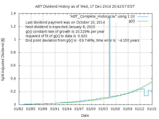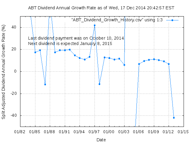 Dividend Growth Rate, min = -71.73% per year, mean = 20.83% per year, std. dev. = 11.73%, "Sharpe Ratio" = 1.77