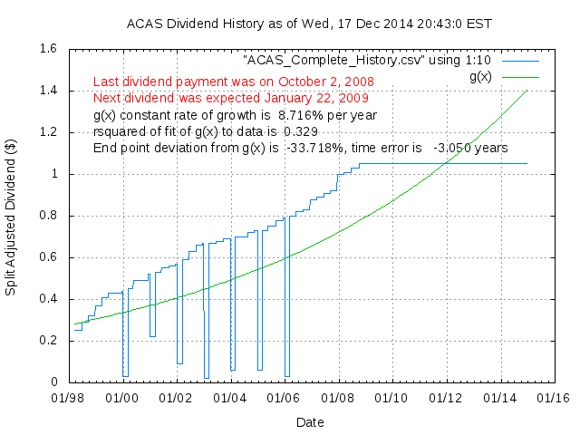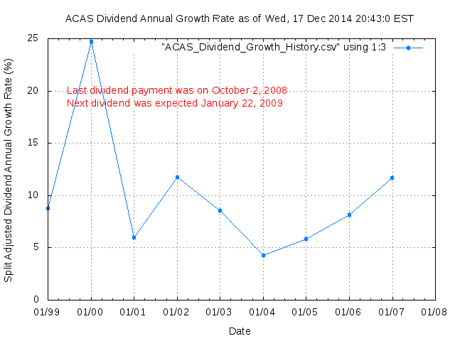 Dividend Growth Rate, min = 4.30% per year, mean = 9.97% per year, std. dev. = 3.83%, "Sharpe Ratio" = 2.60