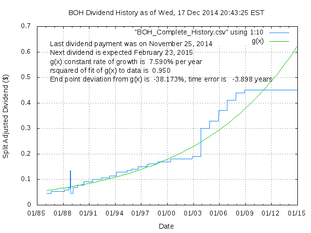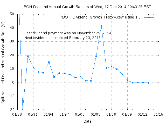 Dividend Growth Rate, min = -19.49% per year, mean = 11.16% per year, std. dev. = 4.70%, "Sharpe Ratio" = 2.37