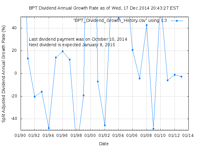 Dividend Growth Rate, min = -67.25% per year, mean = 32.07% per year, std. dev. = 21.66%, "Sharpe Ratio" = 1.48