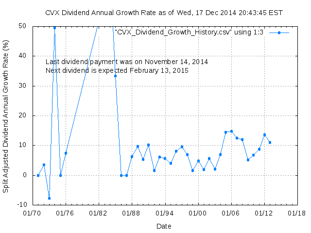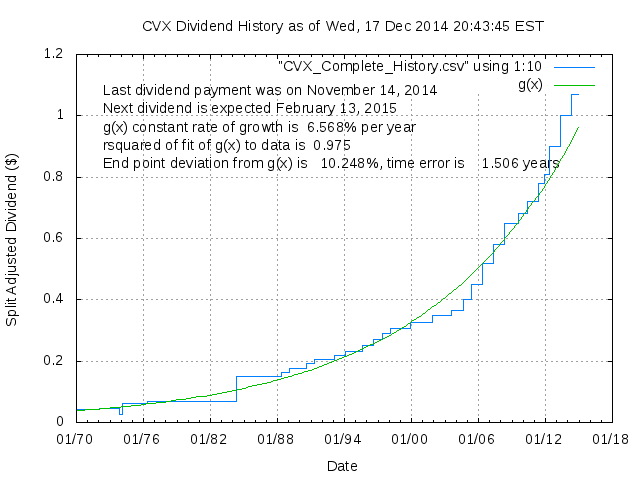 Dividend Growth Rate, min = -7.75% per year, mean = 9.71% per year, std. dev. = 2.79%, "Sharpe Ratio" = 3.48