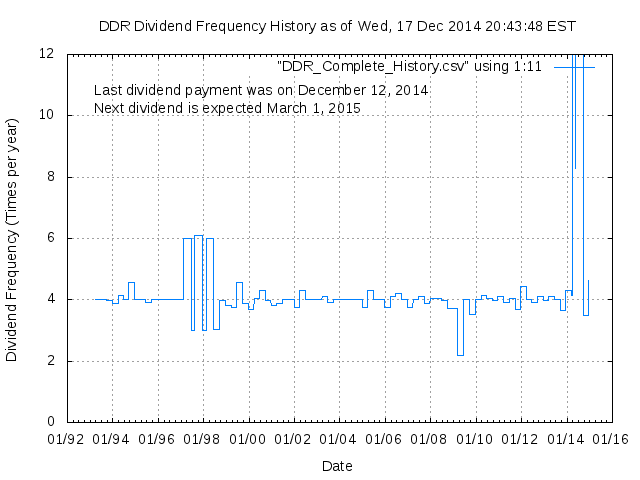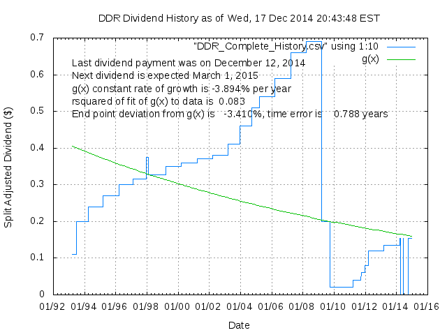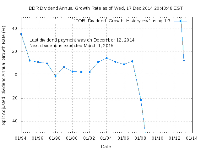 Dividend Growth Rate, min = -81.82% per year, mean = 13.26% per year, std. dev. = 12.30%, "Sharpe Ratio" = 1.08