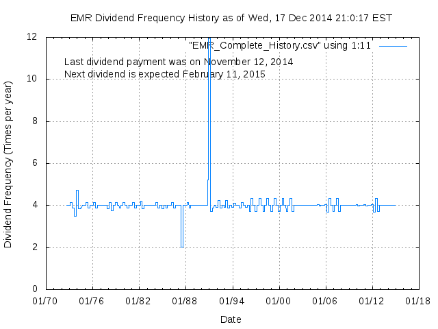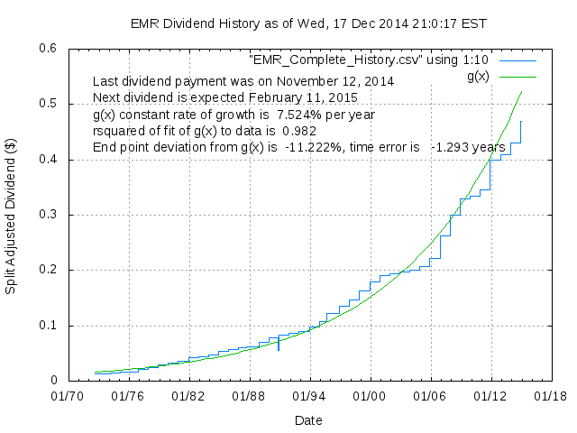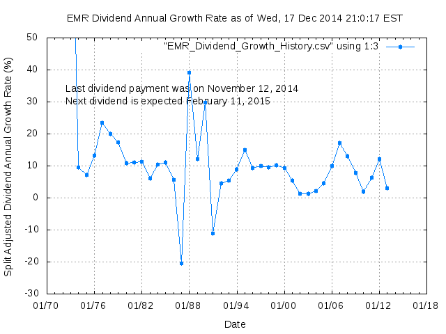 Dividend Growth Rate, min = -20.43% per year, mean = 11.92% per year, std. dev. = 3.43%, "Sharpe Ratio" = 3.47