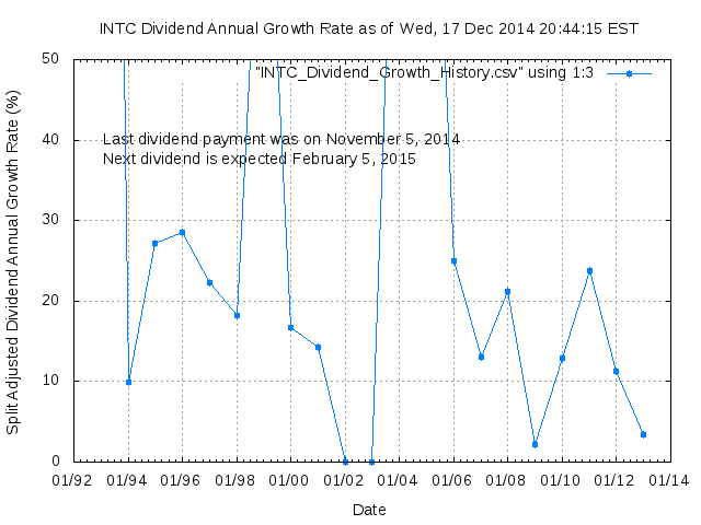 Dividend Growth Rate, min = 0.00% per year, mean = 39.73% per year, std. dev. = 16.65%, "Sharpe Ratio" = 2.39