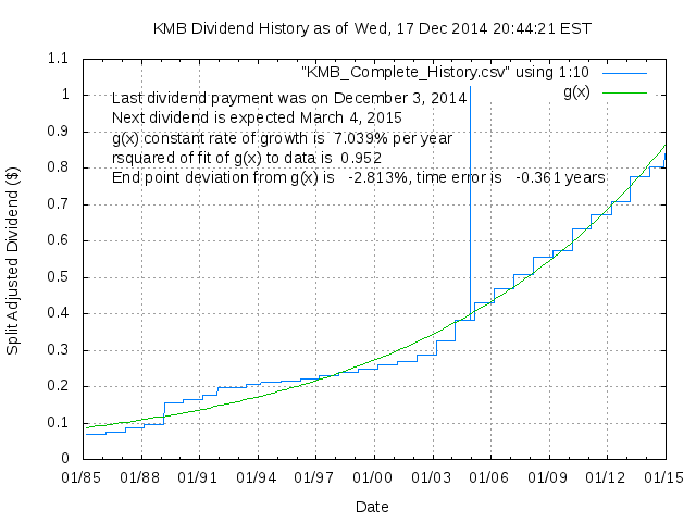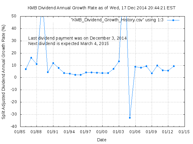 Dividend Growth Rate, min = -32.58% per year, mean = 10.64% per year, std. dev. = 4.48%, "Sharpe Ratio" = 2.37
