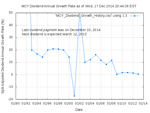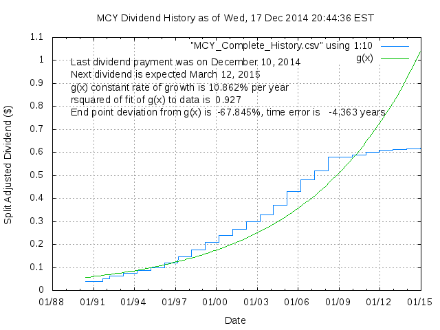 Dividend Growth Rate, min = -17.19% per year, mean = 24.90% per year, std. dev. = 10.36%, "Sharpe Ratio" = 2.40