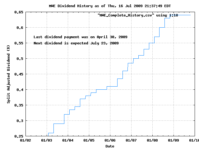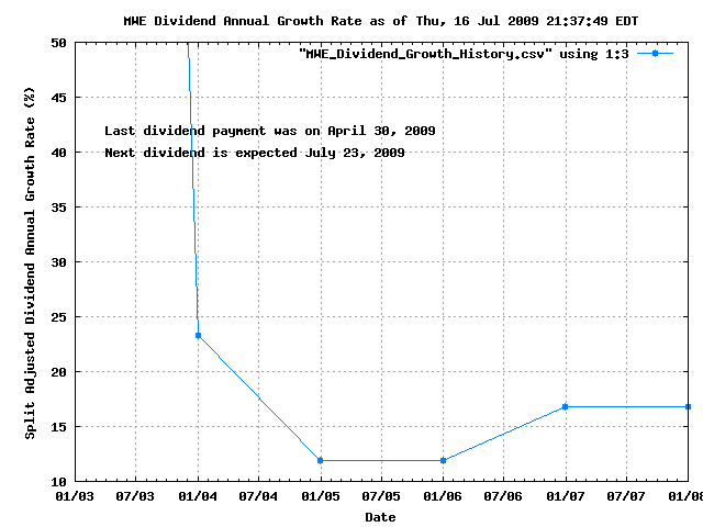 Dividend Growth Rate, mean = 74.09% per year, std. dev. = 60.98%, "Sharpe Ratio" = 1.21