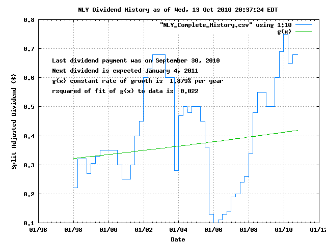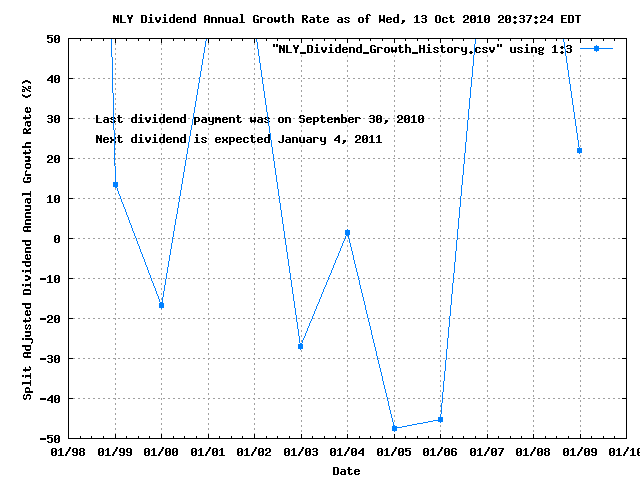 Dividend Growth Rate, min = -47.47% per year, mean = 53.37% per year, std. dev. = 40.21%, "Sharpe Ratio" = 1.33