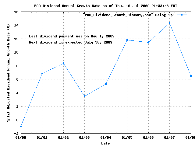 Dividend Growth Rate, mean = 7.46% per year, std. dev. = 2.89%, "Sharpe Ratio" = 2.58