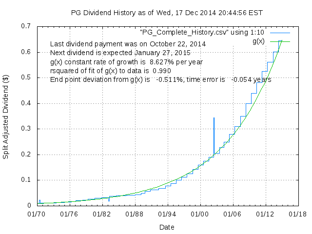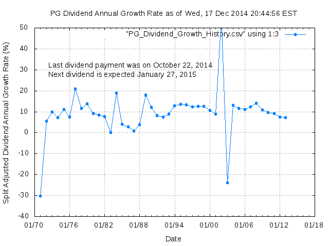 Dividend Growth Rate, min = -30.13% per year, mean = 9.35% per year, std. dev. = 2.24%, "Sharpe Ratio" = 4.17