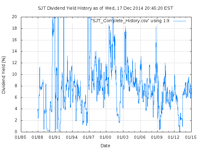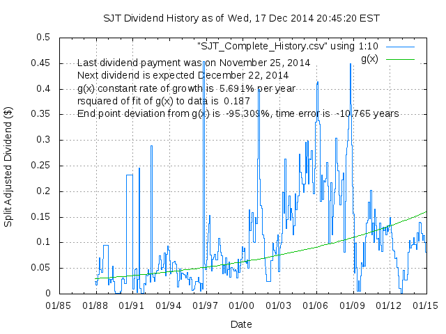 Dividend Growth Rate, min = -79.00% per year, mean = 53.92% per year, std. dev. = 33.17%, "Sharpe Ratio" = 1.63