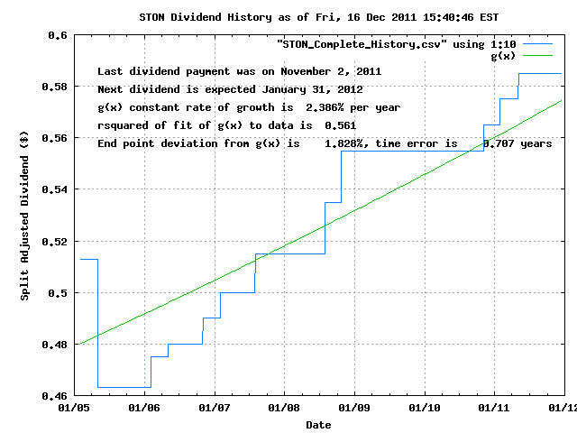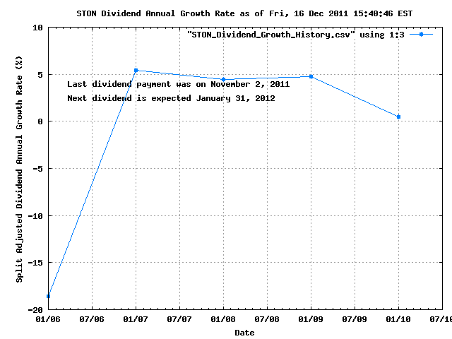 Dividend Growth Rate, min = -18.60% per year, mean = -0.71% per year, std. dev. = 4.09%, "Sharpe Ratio" = -0.17
