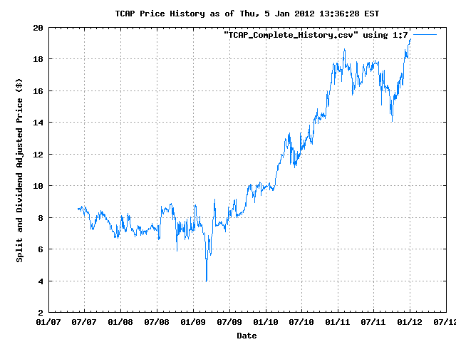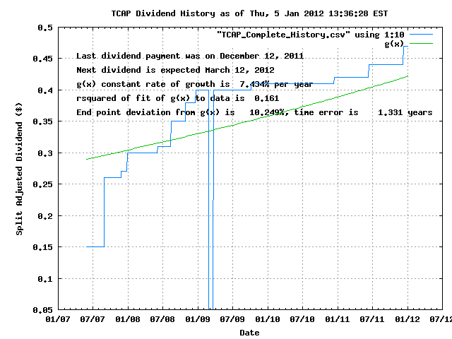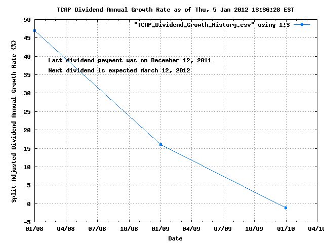 Dividend Growth Rate, min = -1.20% per year, mean = 20.57% per year, std. dev. = 16.53%, "Sharpe Ratio" = 1.24