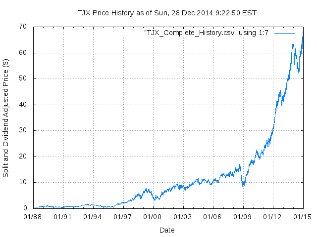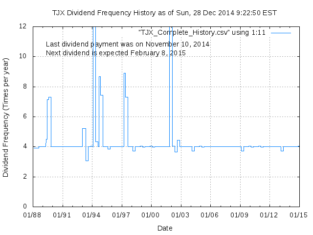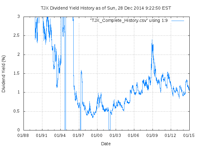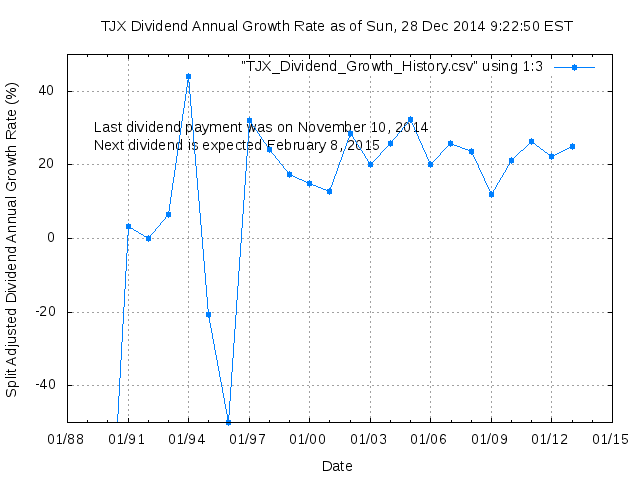 Dividend Growth Rate, min = -99.25% per year, mean = 42.96% per year, std. dev. = 32.81%, "Sharpe Ratio" = 1.31