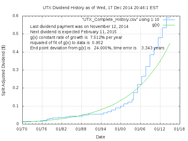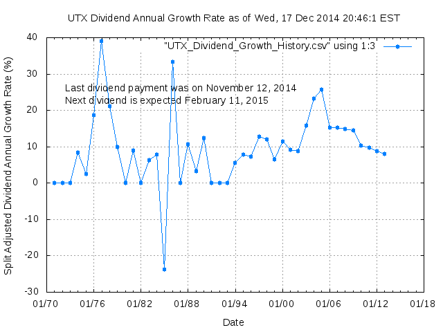 Dividend Growth Rate, min = -23.64% per year, mean = 9.41% per year, std. dev. = 2.18%, "Sharpe Ratio" = 4.32