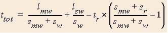 The only difference in the equations for the total times is between the quantities in the parentheses of each equation.
